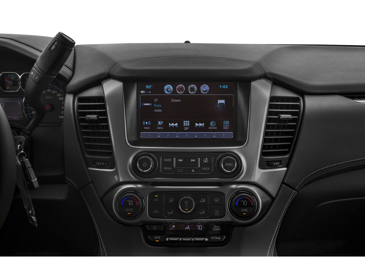 SUSPENSION PACKAGE, STANDARD, INCREASED CAPACITY, PREMIUM SMOOTH RIDE with Air leveler, SUN, ENTERTAINMENT AND DESTINATIONS PACKAGE, (CF5) power sunroof, (U42) rear seat DVD entertainment system and (IO6) Chevrolet MyLink radio with navigation, MAX TRAILERING PACKAGE (Includes (GU6) 3.42 rear axle ratio, (JL1) Trailer brake controller and (Z85) Suspension Package. 4WD models also include (NQH) 2-speed active Transfer case., LICENSE PLATE FRONT MOUNTING PACKAGE , TRAILER BRAKE CONTROLLER, INTEGRATED, TIRES, P275/55R20 ALL-SEASON, BLACKWALL, SUNROOF, POWER, TILT-SLIDING with express-open and close and wind deflector, SUMMIT WHITE, SEATING, FRONT BUCKET WITH LEATHER-APPOINTED SEATING heated seat cushions and seat backs, 10-way power driver and passenger seat includes 6-way power cushions, driver seat 2-position memory, 2-way power lumbar control and power recline (STD), REAR AXLE, 3.42 RATIO.