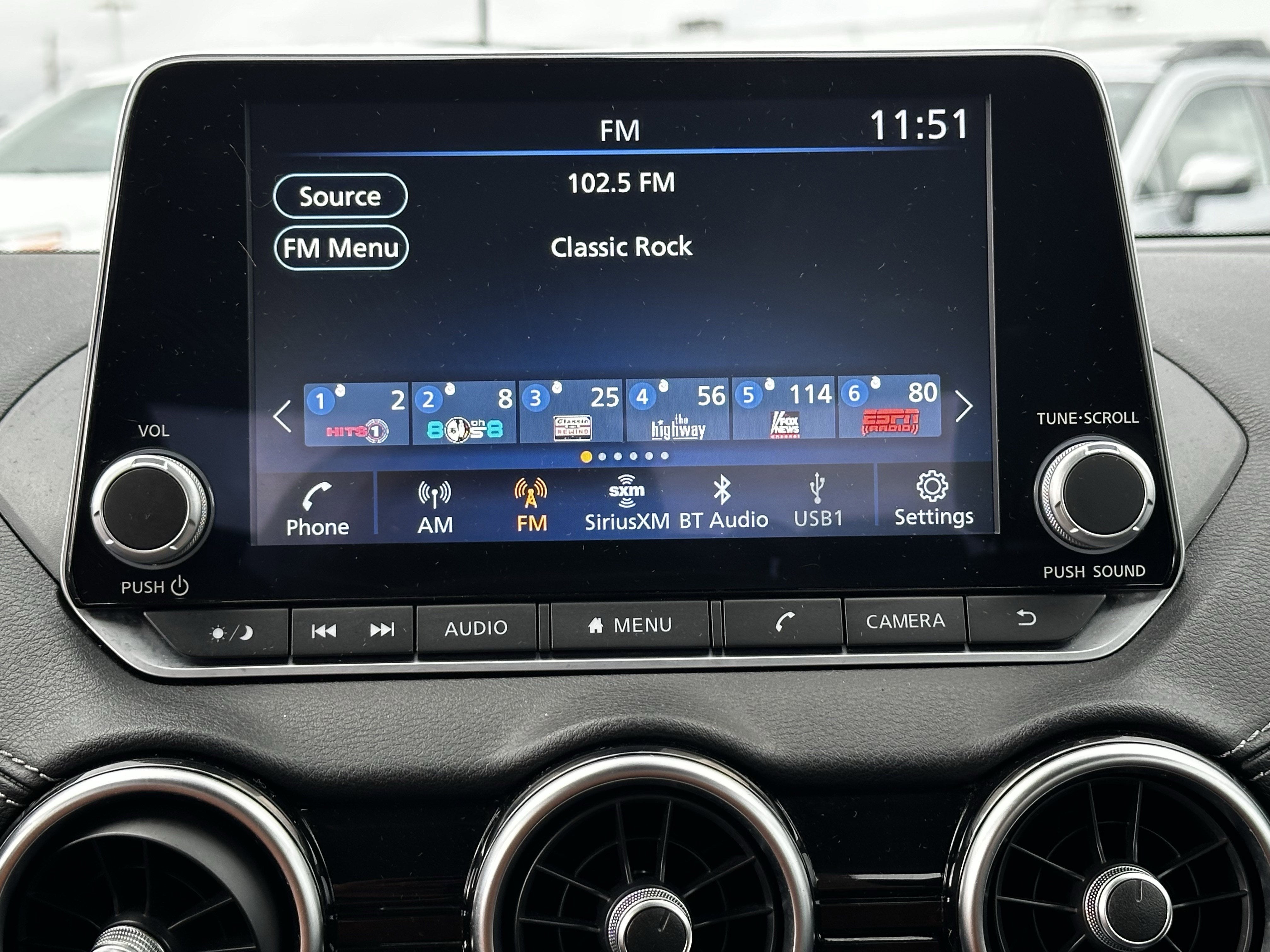 - Radio: AM/FM w/RDS/MP3/Aux-In -inc: 6 speakers plus 2 tweeters in A-pillar, 8" color display w/multi-touch control, streaming audio via Bluetooth®, Bluetooth® hands-free phone system, hands-free text messaging assistant, Siri eyes free, Google Assistant voice recognition w/Apple CarPlay and Android Auto, NissanConnect, (1) front USB connection port (type A), (1) additional front USB (type C) and (1) charge-only USB (type A) center console and SiriusXM radio w/advanced audio features