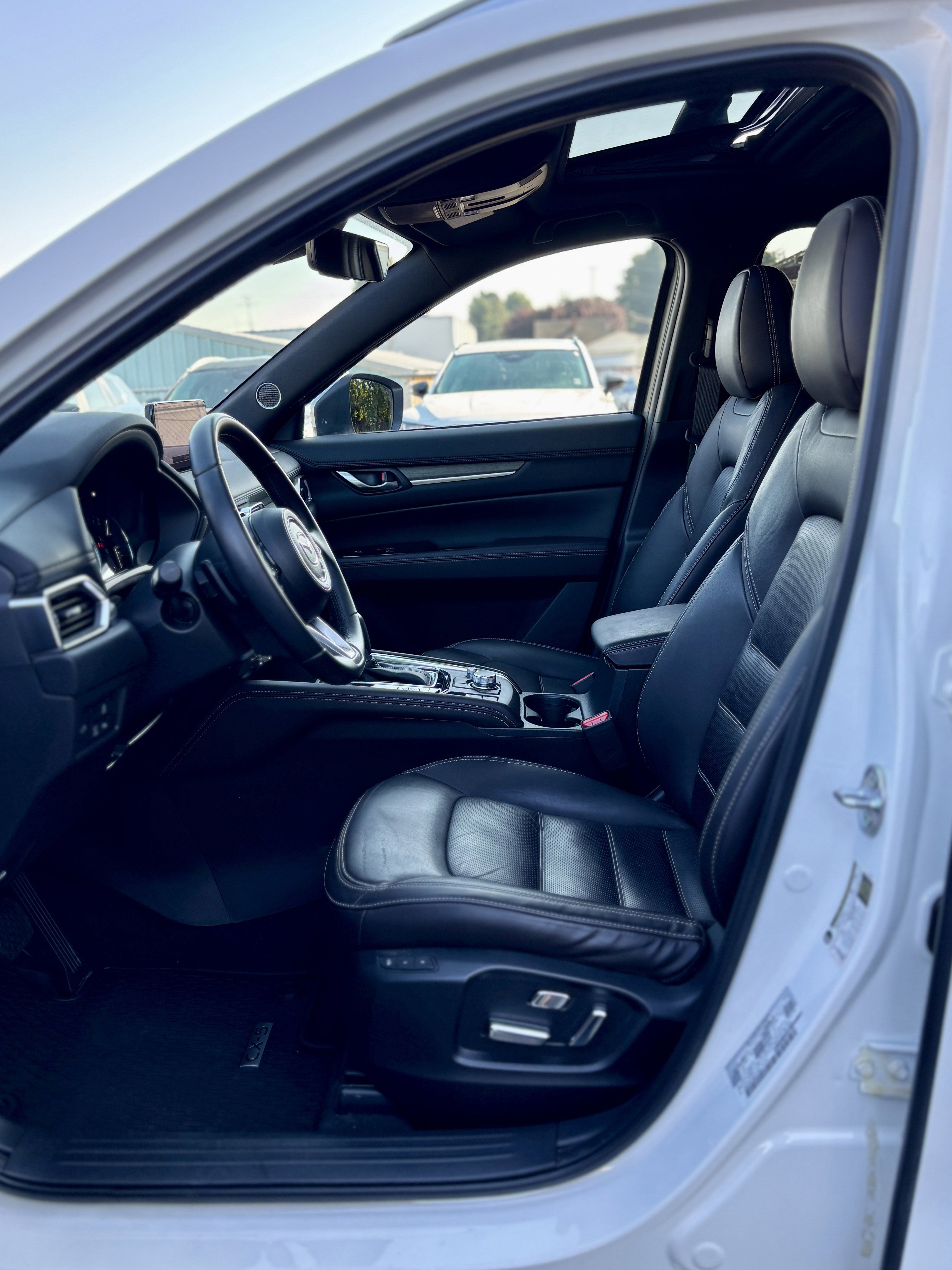 Delivers 27 Highway MPG and 22 City MPG! This Mazda CX-5 delivers a Intercooled Turbo Regular Unleaded I-4 2.5 L/152 engine powering this Automatic transmission. Tailgate/Rear Door Lock Included w/Power Door Locks, Remote Keyless Entry w/Integrated Key Transmitter, Illuminated Entry, Illuminated Ignition Switch and Panic Button, Dual Zone Front Automatic Air Conditioning.*This Mazda CX-5 Comes Equipped with These Options *Aerial View Camera System, RHODIUM WHITE METALLIC PAINT, RHODIUM WHITE METALLIC, CATURRA BROWN, NAPPA LEATHER SEAT TRIM -inc: light gray stitching, CARGO STORAGE SHELF, Wireless Phone Connectivity, Wheels: 19 x 7J Aluminum Alloy -inc: silver metallic finish, Trunk/Hatch Auto-Latch, Trip computer, Transmission: Mazda Intelligent Drive Select -inc: (Mi-Drive), normal, sport and off-road modes.*Visit Us Today!*Come see for yourself or give us a call at 253-215-4656 to schedule a test drive today! Puyallup Mazda 608 River Rd. Puyallup, WA 98371.